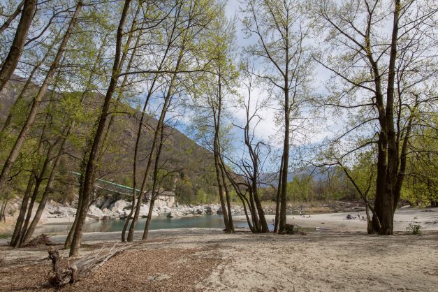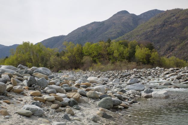 Wenn man Richtung Sportplatz abzweigt, findet man diesen Ausläufer der Maggia umgeben von Sand.